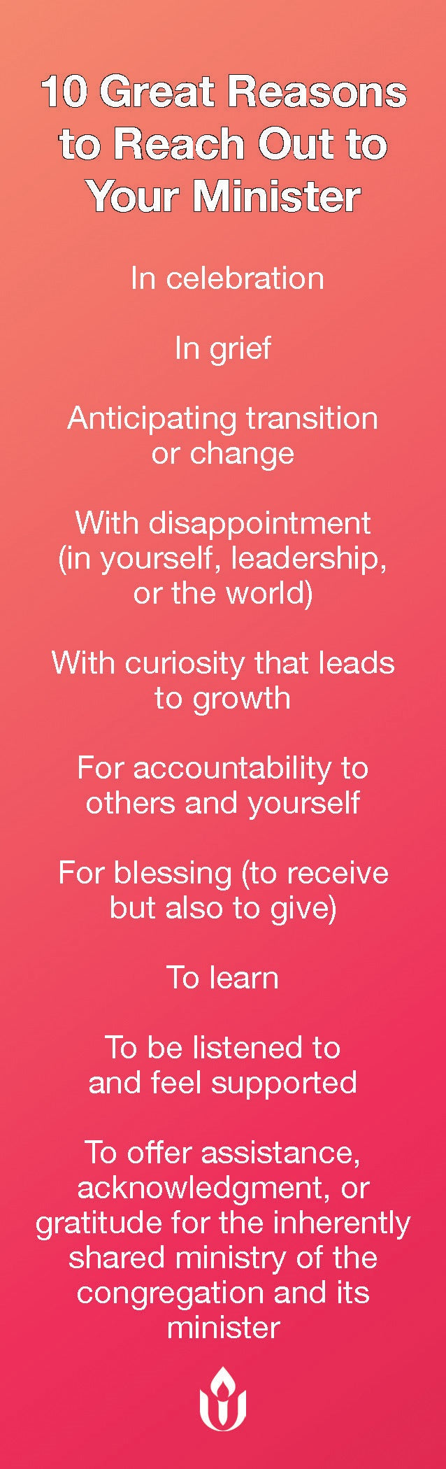 This handy bookmark outlines ten great reasons to reach out to your minister.